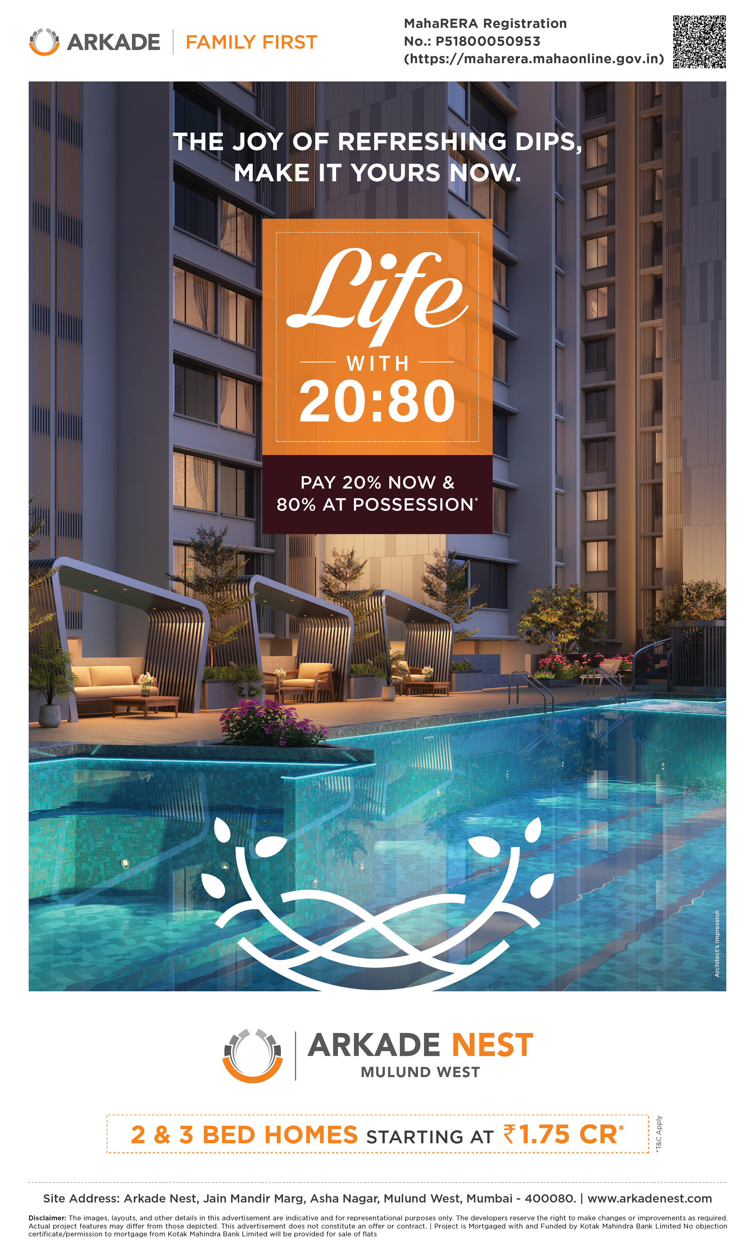 At Arkade Group, there is more to us than what meets the eye. What was started as a passionate drive to craft abodes by Shri Mangilal R. Jain in 1984 has now turned into much more than just that. Led by people who believe in the power of passion and leaps of faith, we have become Life Investors, multiplying life & providing contentment.